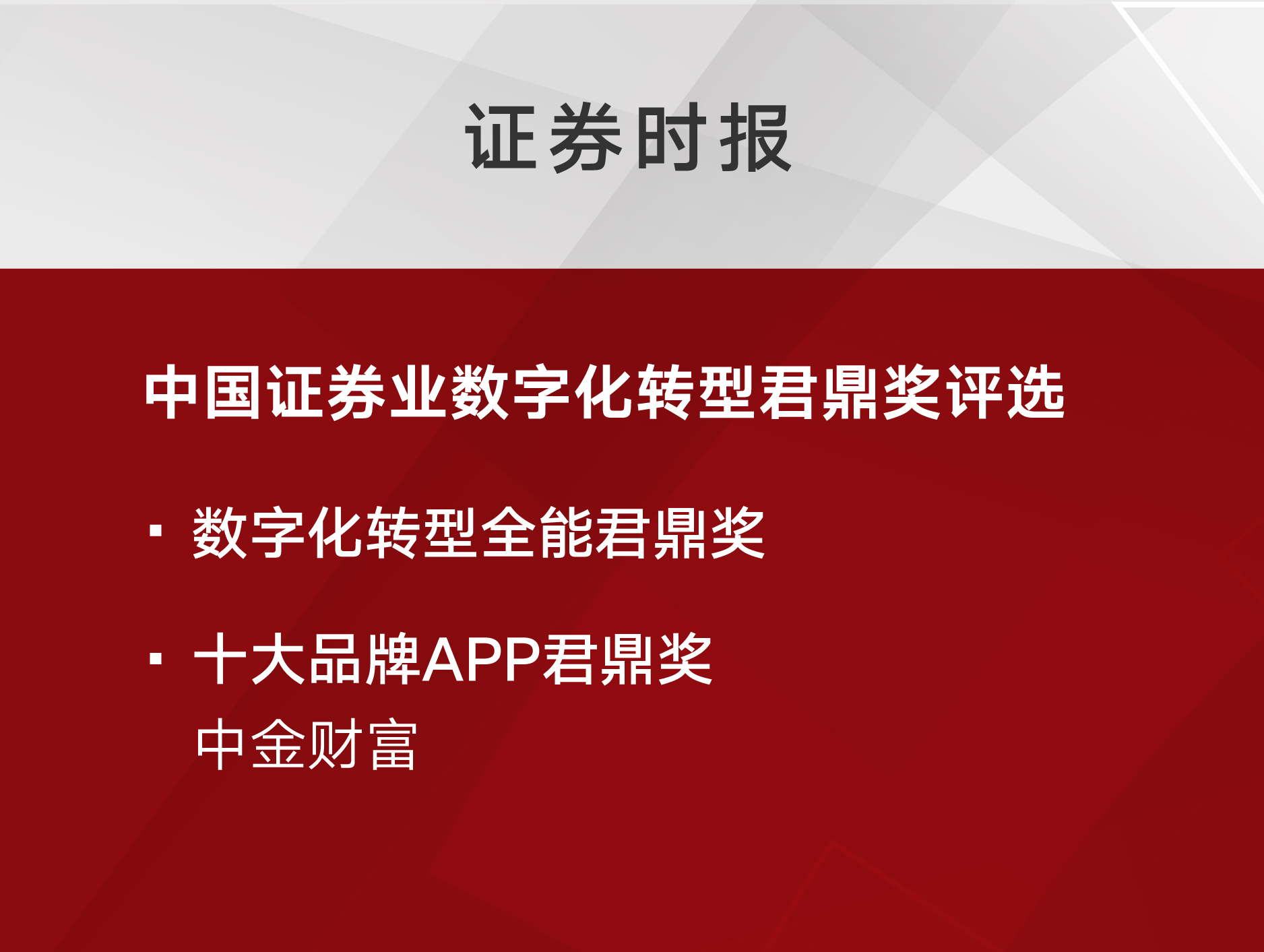 中金荣获《证券时报》首届中国证券业数字化转型君鼎奖评选“数字化转型全能君鼎奖”