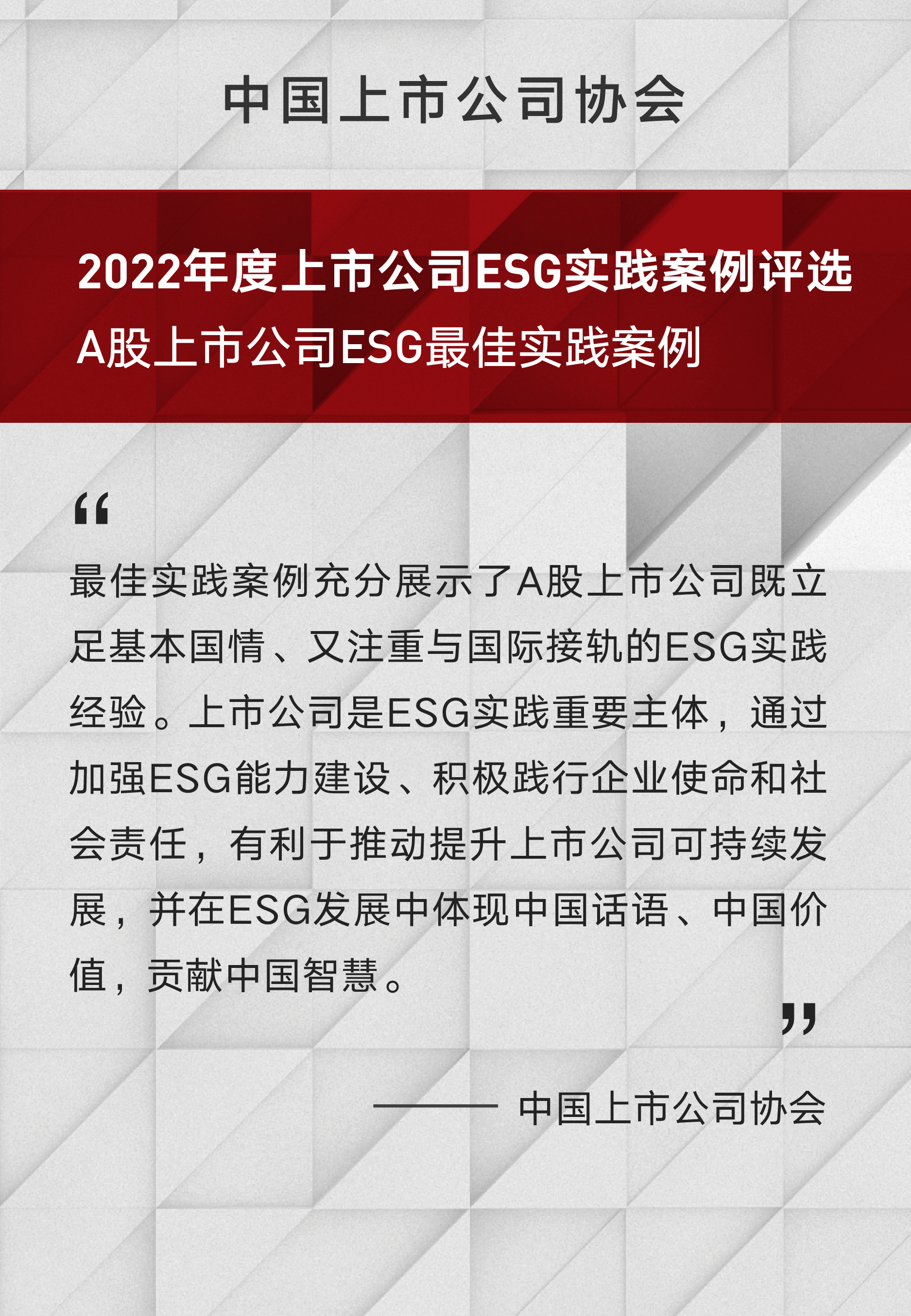 中金公司荣获中国上市公司协会“A股上市公司ESG最佳实践案例”奖项