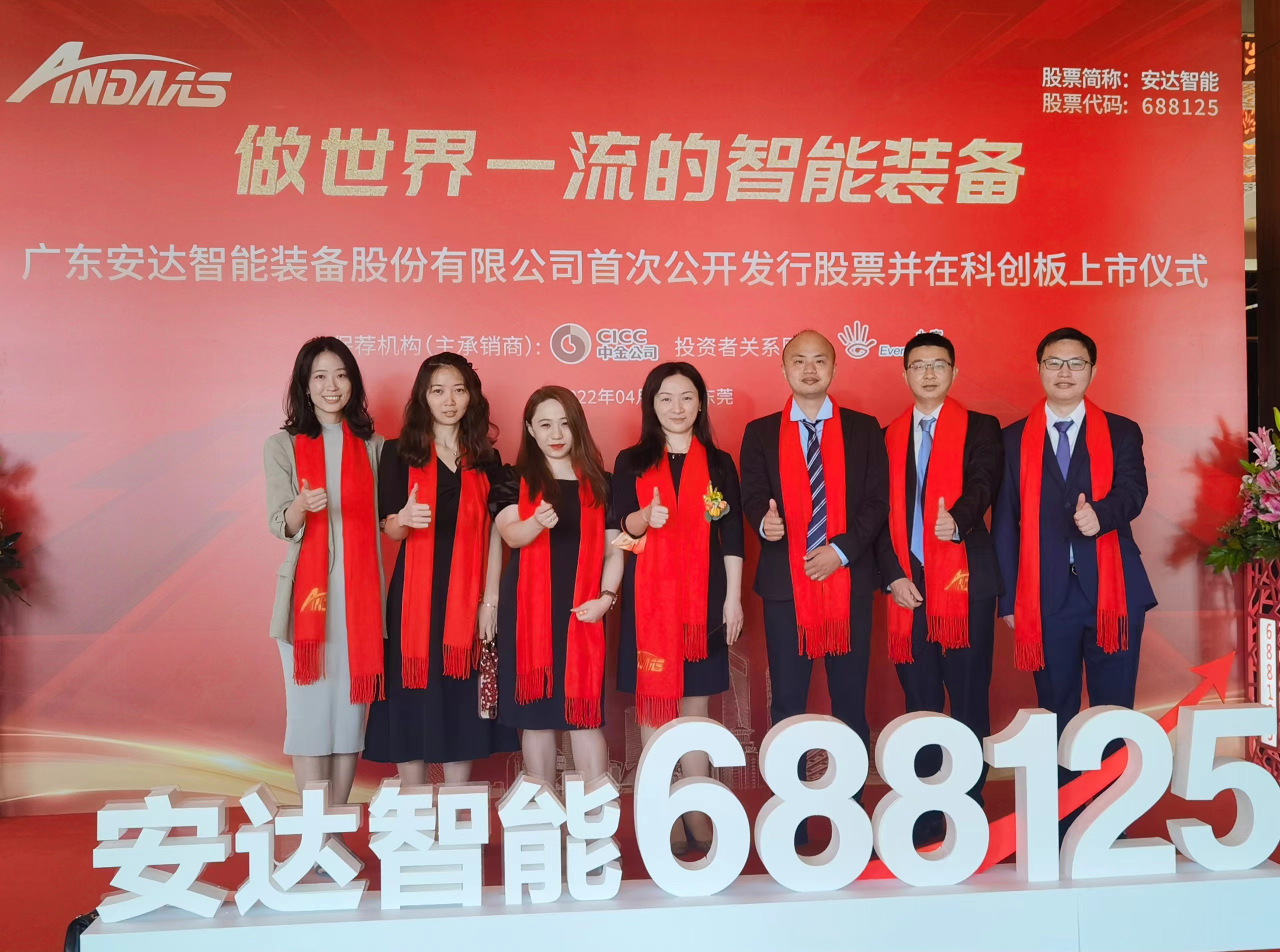 4月15日,广东安达智能装备股份有限公司(“安达智能”或“公司”,代码:688125.SH)于上海证券交易所科创板上市。本次发行后,安达智能成为A股首家专业从事流体控制设备研发和生产的上市公司,以及广东省东莞市首家在科创板上市的智能装备企业。本项目中,中金担任独家保荐机构和独家主承销商。