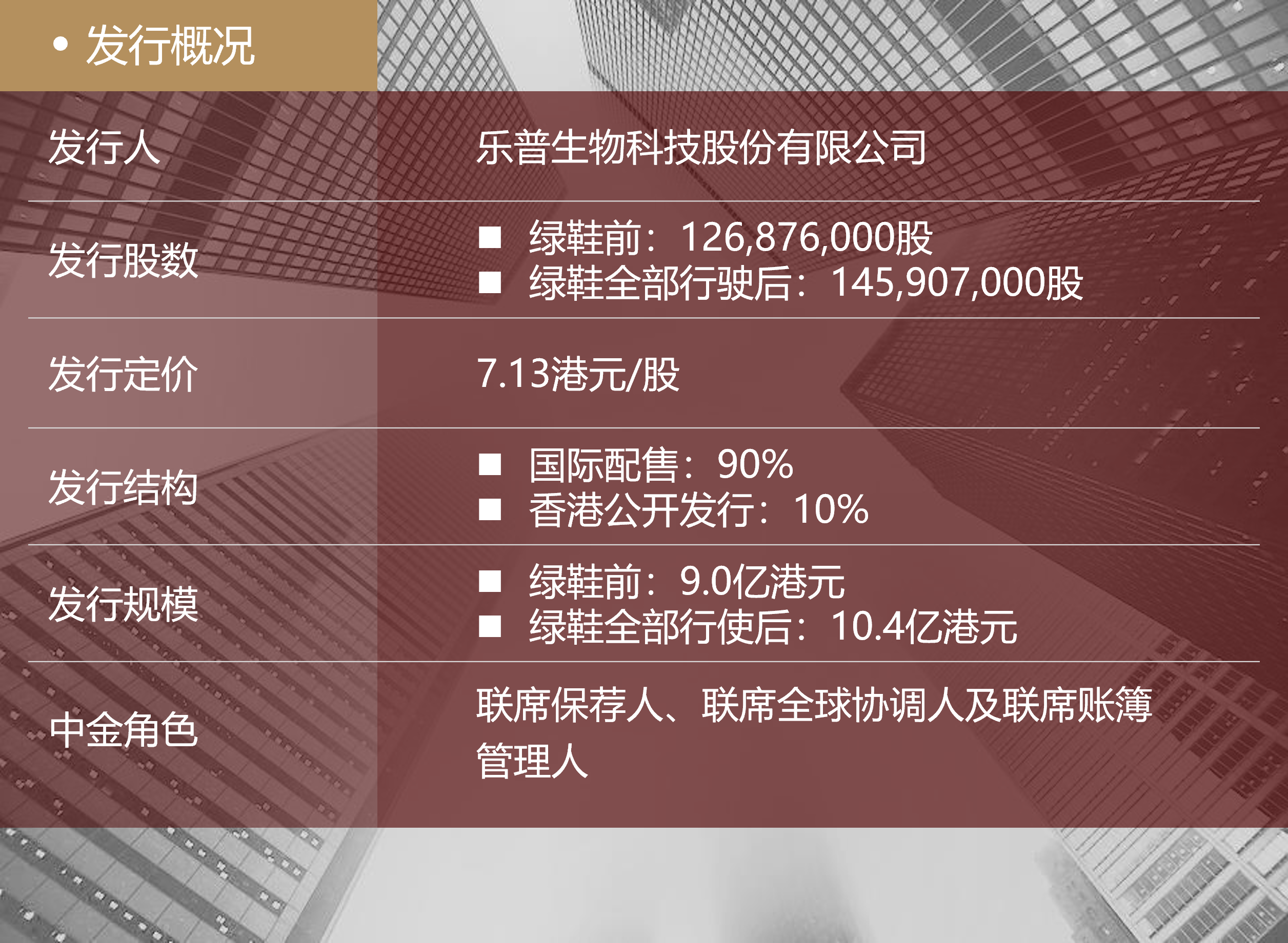 中金公司作为本次项目联席保荐人、联席全球协调人及联席账簿管理人,负责多项重要任务。中金公司以其在港股医疗企业IPO的丰富经验为公司保驾护航,全程牵头项目执行工作,克服当下港股18-A(香港联交所主板上市规则18A章《生物科技公司》)项目所面临的严峻市场背景,协助公司在疫情严峻和市场环境波动的环境下成功上市发行,并精准判断发行时机,为公司把握住了近期最有利的窗口期。