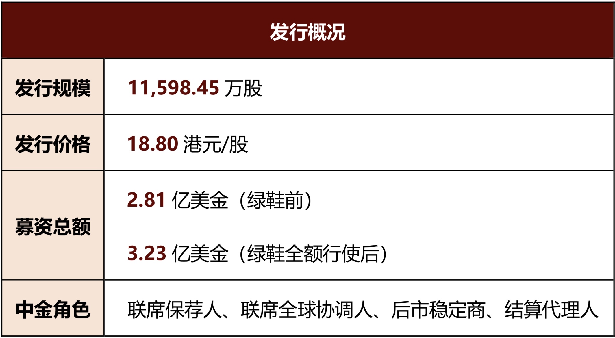 在申报及审核阶段,中金公司作为联席保荐人中唯一的中资投行,始终依靠独有的植根中国的差异化理解能力,在面临多个关键节点、重大事项时提供了符合监管预期、客户利益及中介机构要求的专业、可行解决方案,保障项目顺利执行,取得了客户管理层的深度信赖与高度赞许。