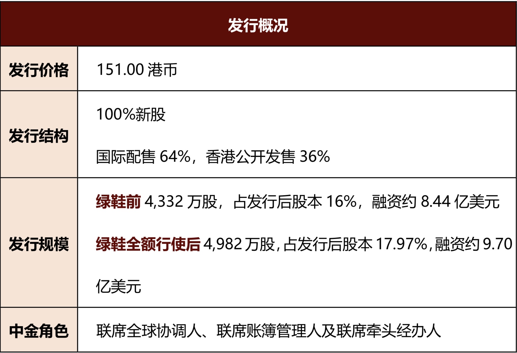 中金公司作为本次发行的联席全球协调人、联席账簿管理人及联席牵头经办人,凭借对香港资本市场的深刻了解和丰富的IPO项目执行经验,在发行过程中充分挖掘投资者需求,引入多家高质量基石投资者,高效转化簿记订单,助力公司实现高端定价并顺利完成发行。