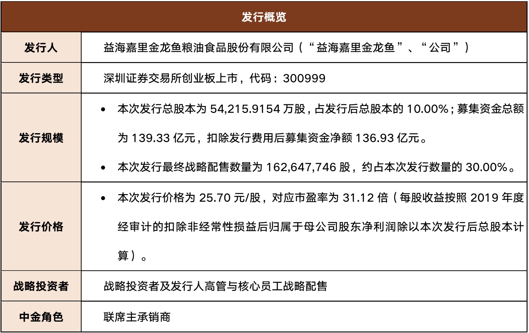 本次交易中,中金公司作为联席主承销商,凭借着对创业板注册制改革的深入理解和上市发行服务经验的丰富积累,积极推动益海嘉里金龙鱼注册制下的审核工作;通过对公司的深入分析,并结合自身对行业的丰富理解,潜心研究公司业务模式,协助公司充分挖掘投资亮点,获得资本市场高度认可。