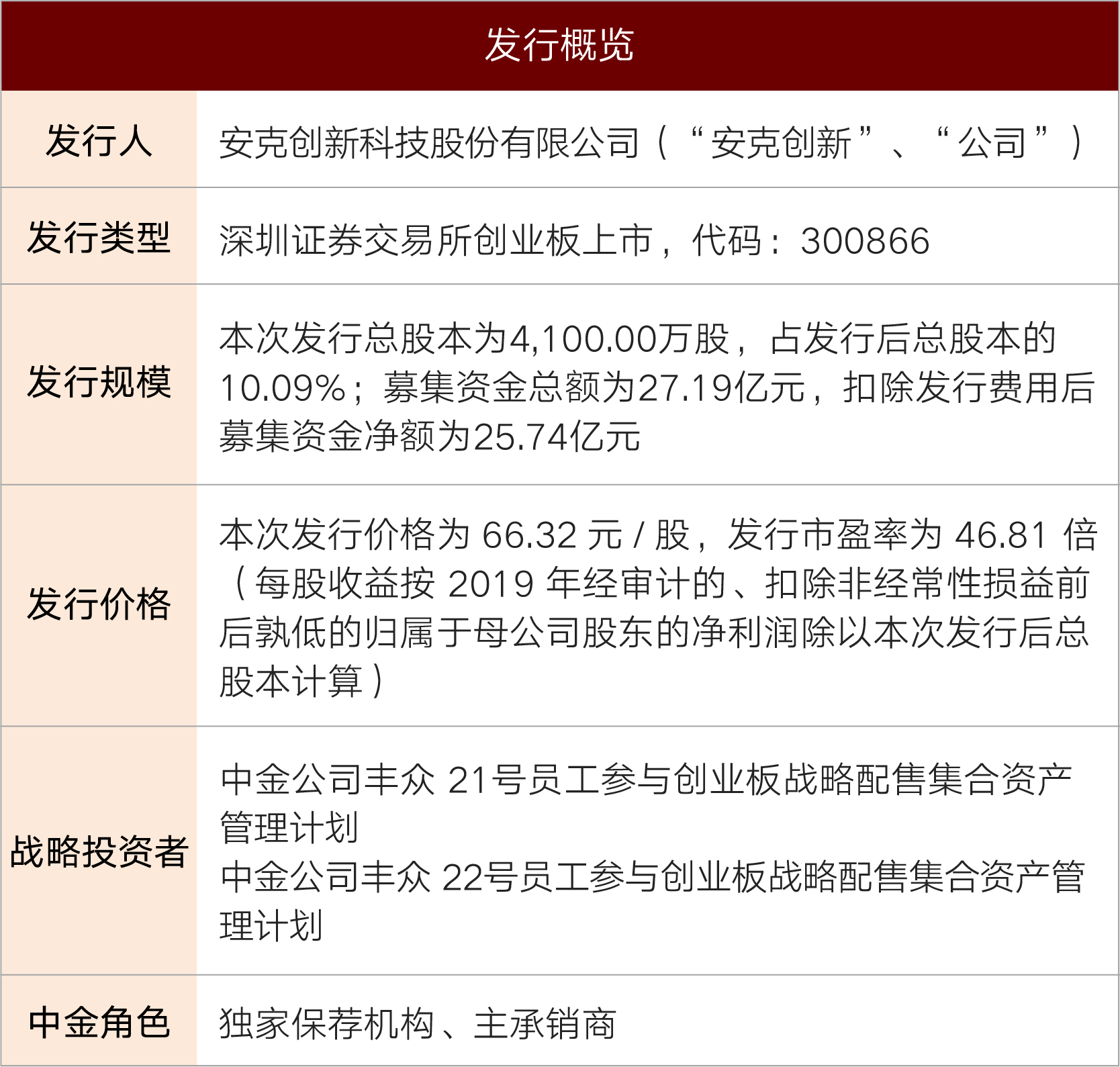 2020年8月24日,安克创新科技股份有限公司(以下简称“安克创新”或“公司”,股票代码:300866.SZ)正式在深圳证券交易所创业板挂牌上市。安克创新本次公开发行总股数4,100.00万股,占发行后总股本的10.09%;发行价格66.32元/股;募集资金总额为27.19亿元。中金公司在本项目中担任独家保荐机构和主承销商。