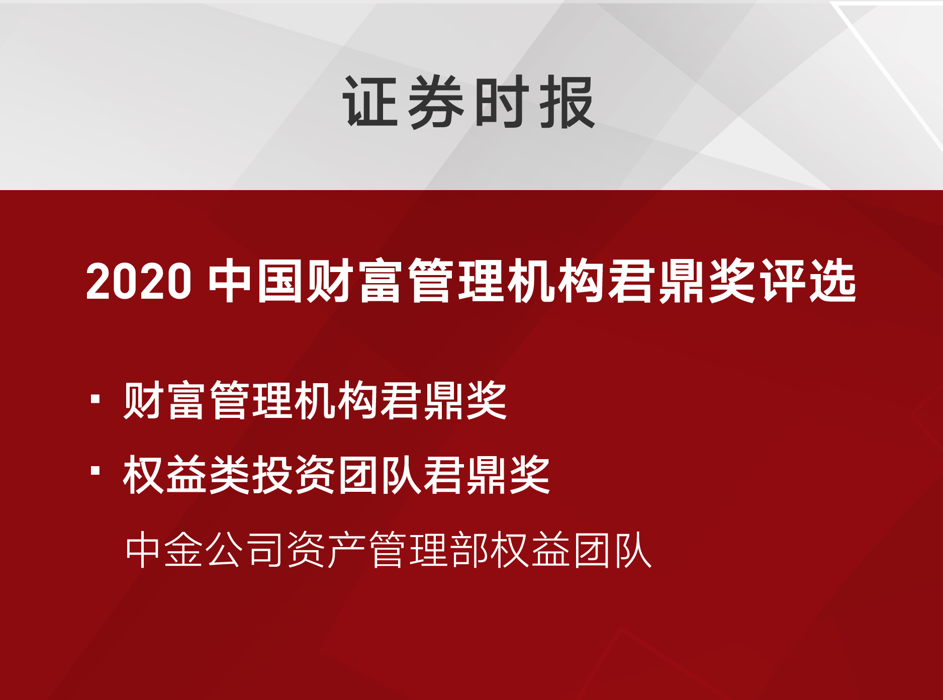 中金在《证券时报》2020中国财富管理机构君鼎奖评选中再次荣获多项大奖